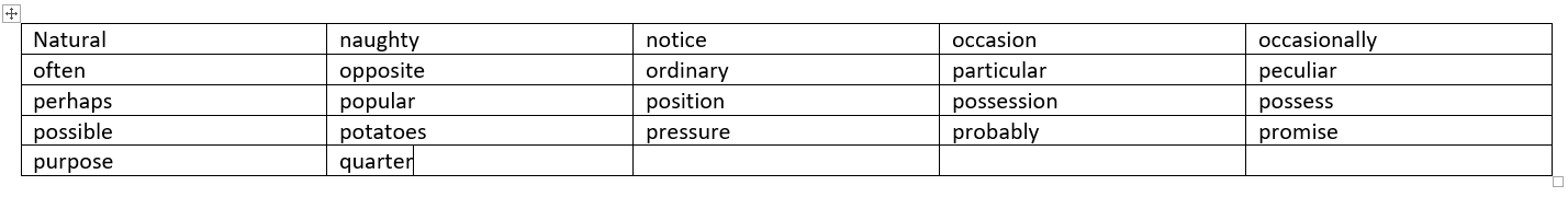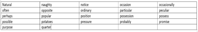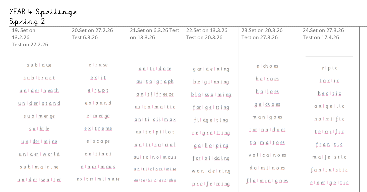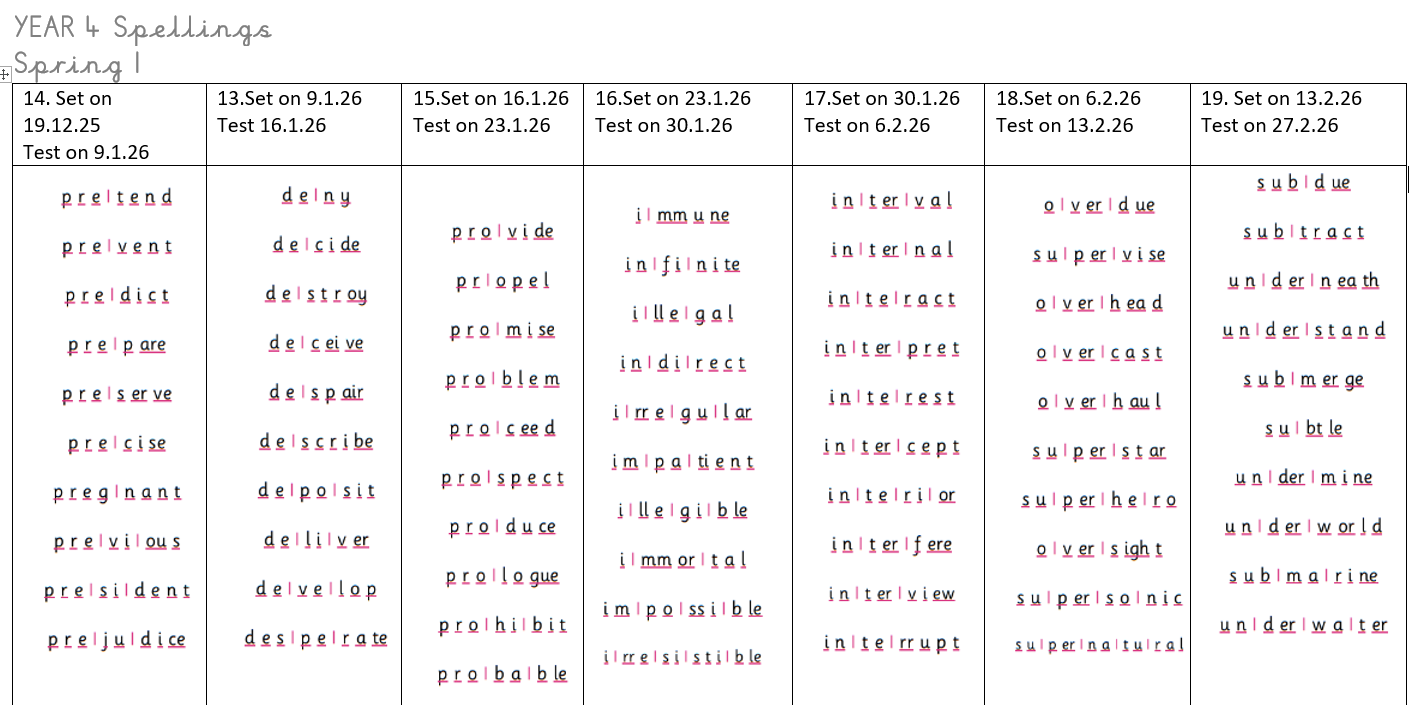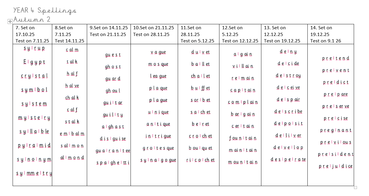 YEAR 4 AUTUMN  1 SPELLING LIST