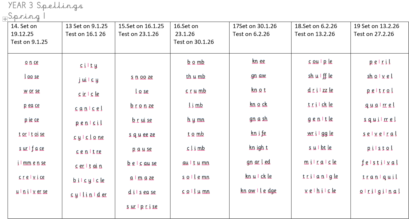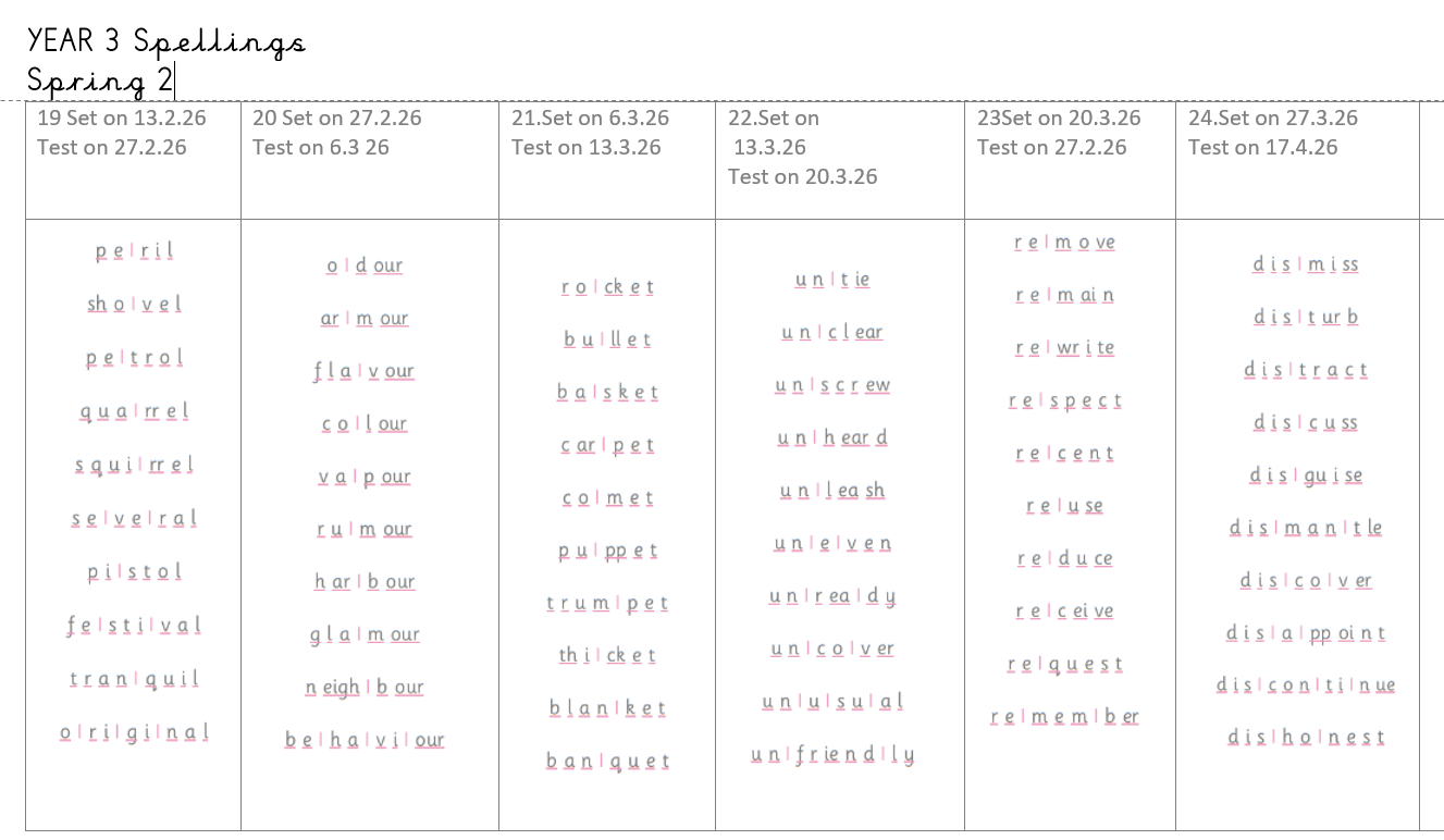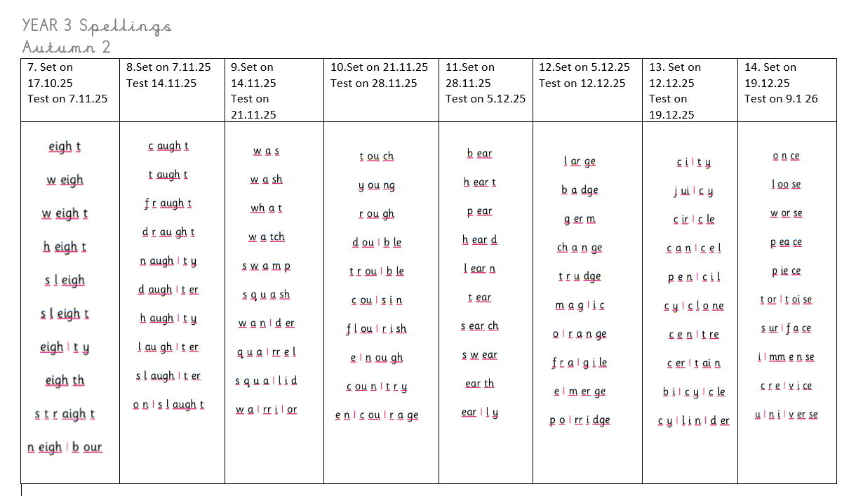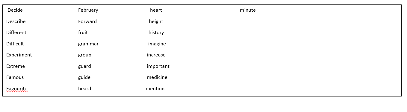 YEAR 3 AUTUMN 1 SPELLING LIST